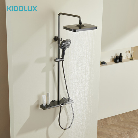 Kidolux современный дизайн, матовый черный настенный набор для ванной, душевой, смеситель для горячей и холодной воды, смесители для душа с ручным управлением для ванной комнаты